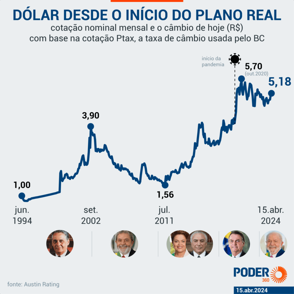Interessante a visão abaixo que cruza a evolução da moeda pós criação do plano real, onde inicialmente as cotações eram 1 para 1.