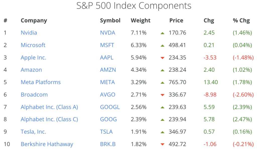 Fonte: S&P 500 Companies by Weight / Pesquisado em 09/setembro de 2025 às 23h22
