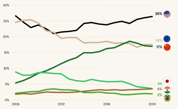 Não há dúvidas que as cifras ilustram o tamanho do fenômeno americano. Empresas como a Nvidia multiplicaram seu valor de mercado em trilhões de dólares em poucos anos, e hoje, nove das dez maiores companhias do mundo têm sede nos EUA. Além disso, os EUA concentram a maior parte das multinacionais e contam com cerca de mil empresas estrangeiras listadas em sua bolsa, abrigando um universo de oportunidades de investimento muito além dos nomes domésticos.