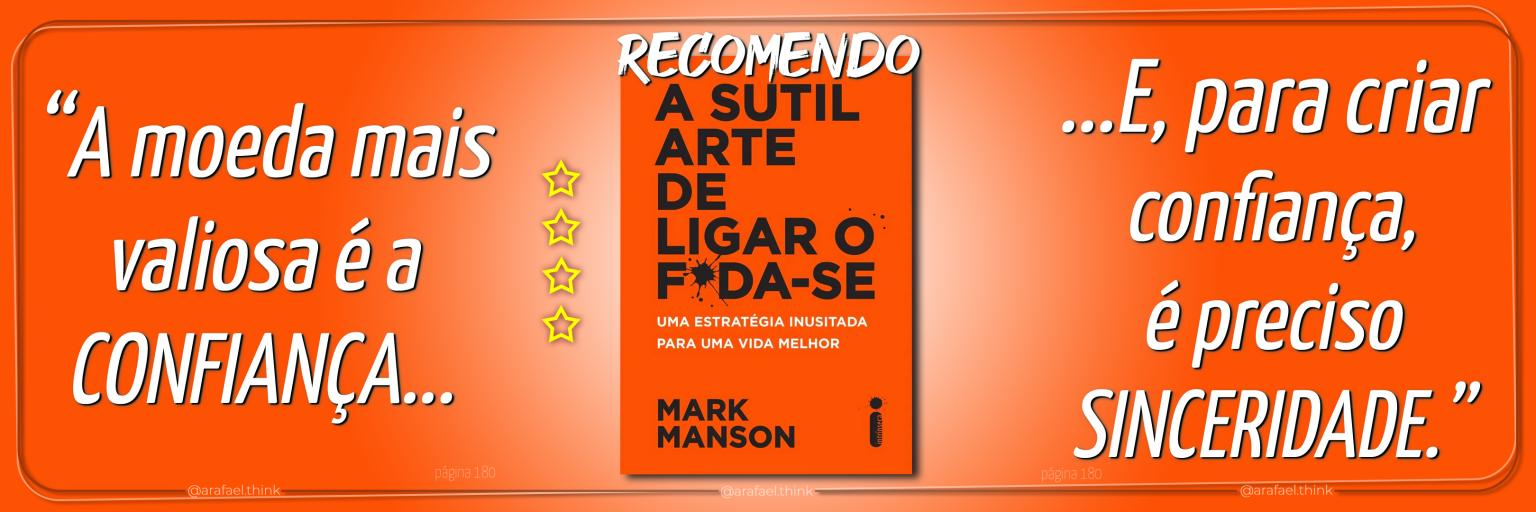Mark Manson, com seu ponto de vista crítico, coerente com a realidade e consciente dos nossos limites, oferece uma leitura simples e direta, sem rodeios. Ao ler o livro, você terá a impressão de estar ouvindo a história face a face.
