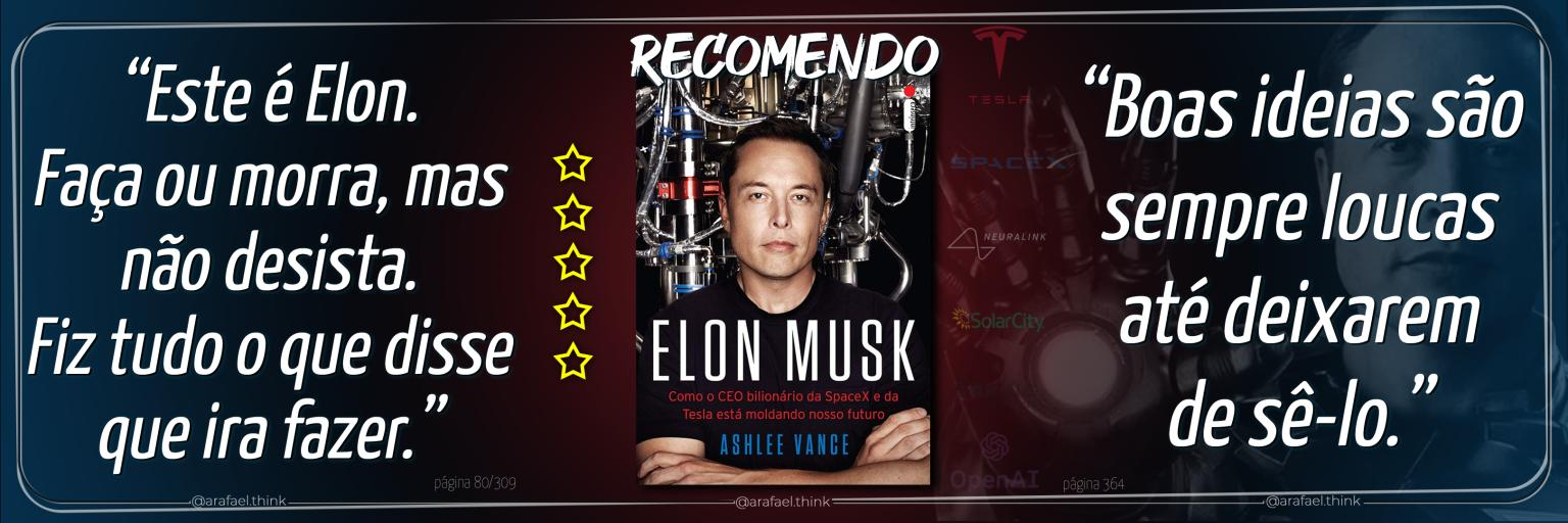 O autor Ashlee Vance ilustra para seus leitores as características e a forma de trabalho (forte) de Musk em suas empresas, com alta performance e redução de custos. O livro, publicado em 2015, é interessante para entender como tudo começou. Hoje, em uma breve pesquisa na internet, verá que muitos desafios expostos no livro foram superados e metas ousadas para a época foram alcançadas.
