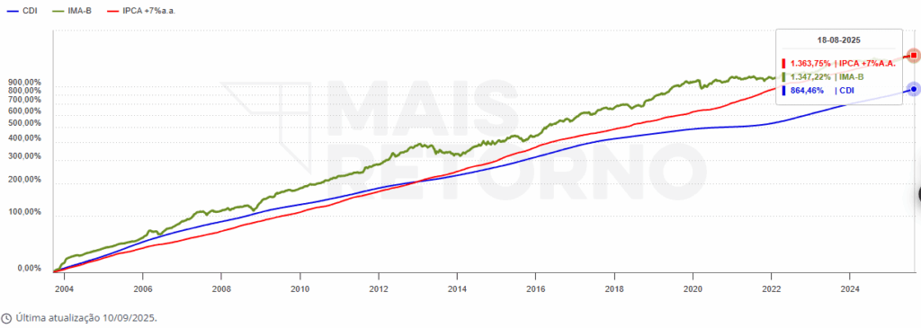 Na tabela acima notamos que nos últimos 15 anos, títulos atrelados ao IPCA+ superaram o CDI em performance, protegendo o poder de compra e alcançando retornos superiores em horizontes mais longos. Ainda assim, essa rentabilidade maior está associada a uma volatilidade mais elevada, por isso o IPCA+ é mais indicado para objetivos de longo prazo e investidores dispostos a suportar oscilações de mercado.