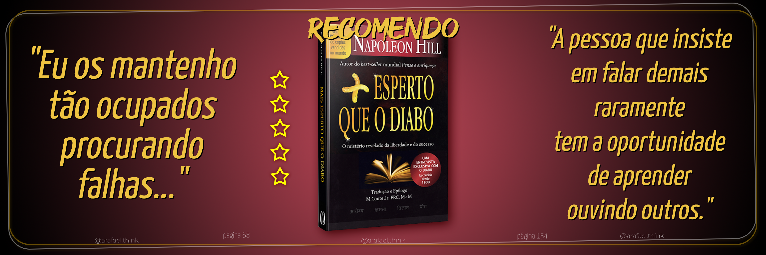 Não poderia deixar de mencionar “Mais Esperto que o Diabo” de Napoleon Hill, um dos melhores, senão o melhor livro que li em 2019.