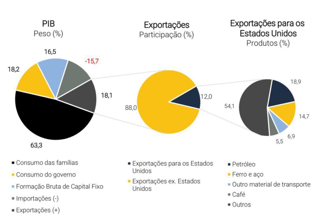 Fonte: Impactos das tarifas dos EUA sobre o Brasil – XP Investimentos
